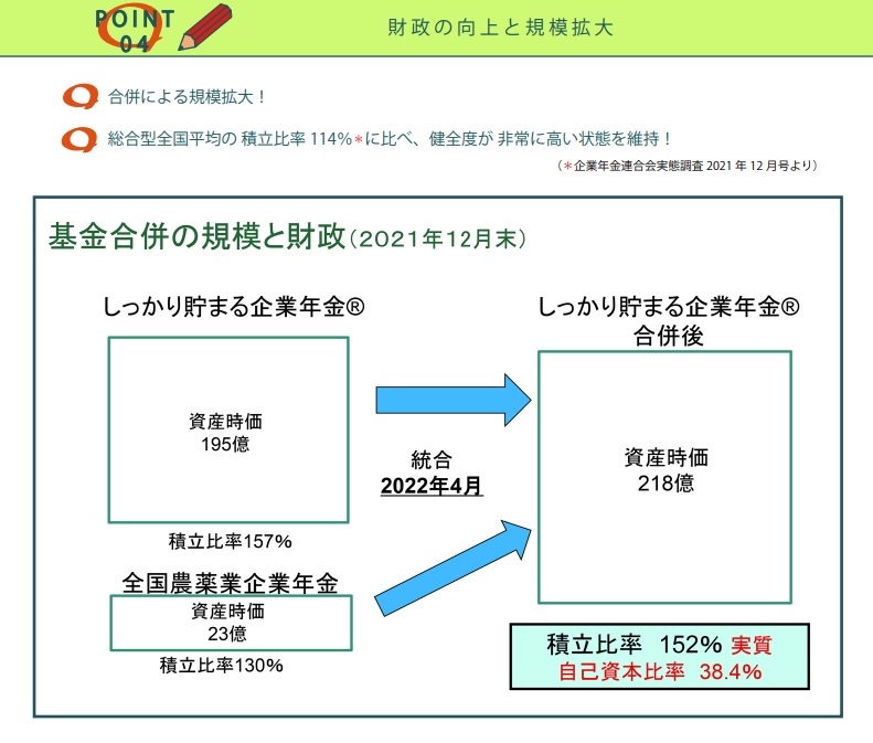 さらにその後の、国の年金代行部分返還命令による資産規模縮小を他の年金基金と合併することで対応し、現在は日本で3本指に入る民間の全国系年金基金「しっかり貯まる 企業年金(全国ビジネス企業年金基金の愛称)」に成長しました。